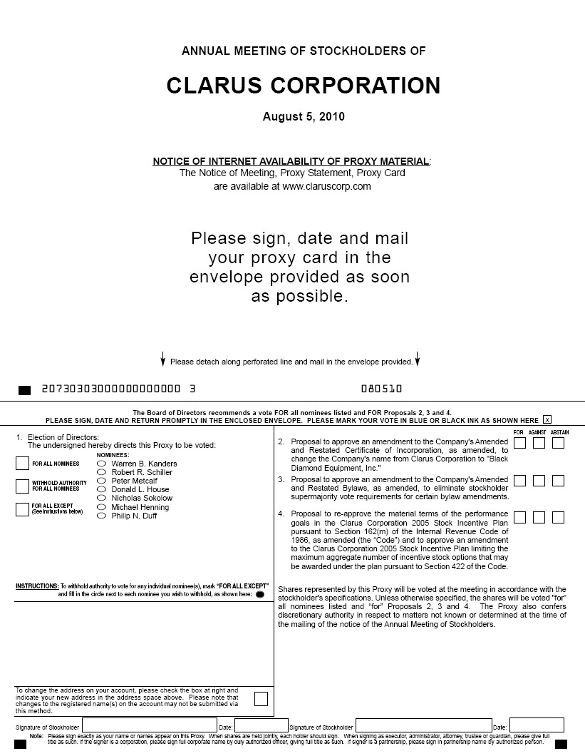 Secretary, Clarus Corporation, 2084 East 3900 South, Salt Lake City, UT 84124