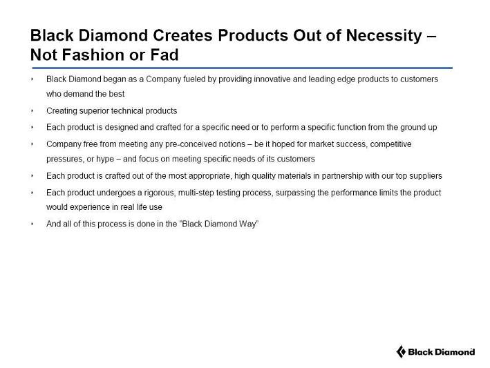 Act of1995. Black Diamond Equipment (“Black “plans,” “expects,” “intends,”