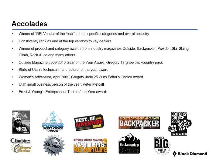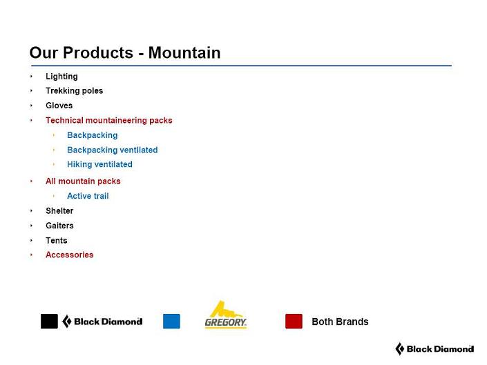 Black Diamond Equipment, Ltd. and Gregory Mountain Products, Inc., including