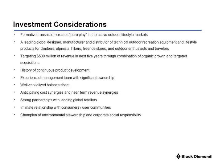 investor in Black Diamond Equipment, Ltd. Michael A.