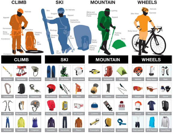 Our products span 33 single product categories and include a wide variety of technical outdoor equipment and lifestyle products for rock and ice climbers, alpinists, hikers, skiers, cyclists, and outdoor enthusiasts, providing seasonal diversification with a balance of sales across both the fall/winter and spring/summer sports seasons. We design many of our products for extreme applications, such as high altitude mountaineering, ice and rock climbing, mountain and road riding, as well as backcountry, freeride, alpine skiing, and race skiing. Generally, we divide our product offerings into the following four primary categories: